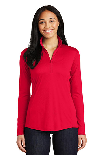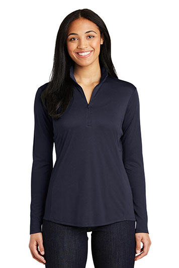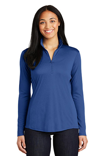This lightweight pullover locks in color and wicks moisture. It's versatile enough for year-round wear.