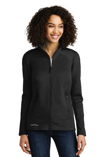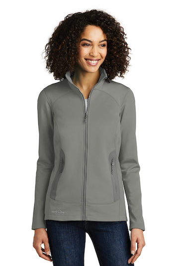 Made for movement, this sophisticated, stretch-infused twill fleece jacket has a smooth face and brushed fleece backing. Tonal welding details at the pockets and streamlined tailoring give it a refined look for indoor and outdoor uses. Beautifully shaped, feminine collar. Molded reverse coil zippers. Front zippered pockets. Contrast Eddie Bauer heat transfer logo on the right hem. Made of 8.3-ounce, 94/6 poly/spandex fleece with an anti-pill finish.